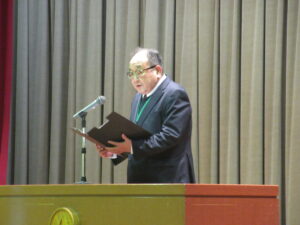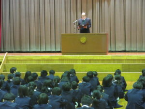 校長先生は「2学期のたくさんの行事を通して成長したこと」や「冬休み中はお手伝いやあいさつに進んで取り組んでほしいこと」等について,児童に伝えました。
