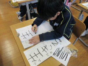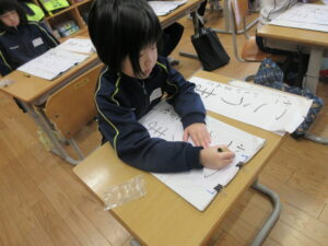 全学年が書初めに取り組みました。どの子も練習の成果を発揮して、一画一画集中して取り組んでいました。家庭でのご支援ありがとうございました。